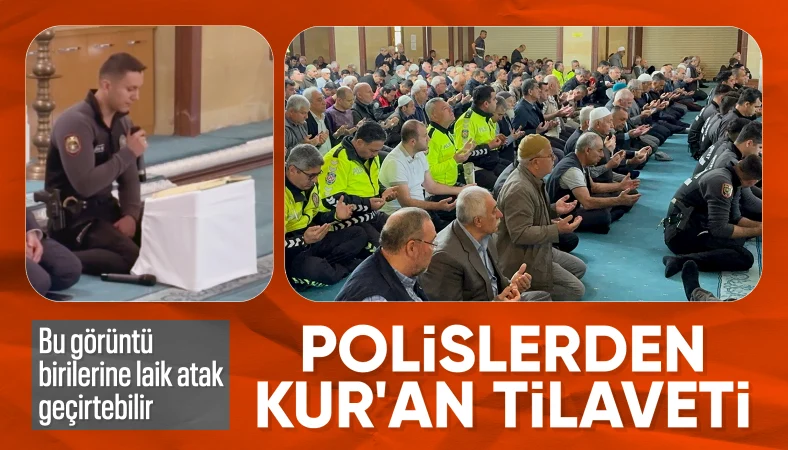Din görevlilerinin yanında bir polis memuru da Kur'an-ı Kerim okudu.