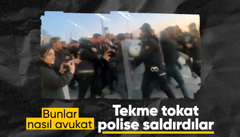 Yürüyüş esnasında yasa dışı protestoya müdahale etmeye çalışan polisleri, İstanbul Barosu avukatları saldırdı.