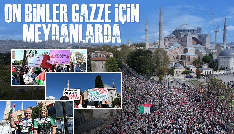 Ayasofya'dan Eminönü'ne yürüyen kalabalık, dünyaya "Gazze'ye özgürlük" mesajı veriyor.