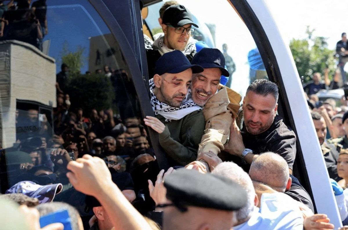 Otobüslerle Batı Şeria'ya getirilen Filistinli esirler, tarihi bir kavuşma anına sahne oldu.
