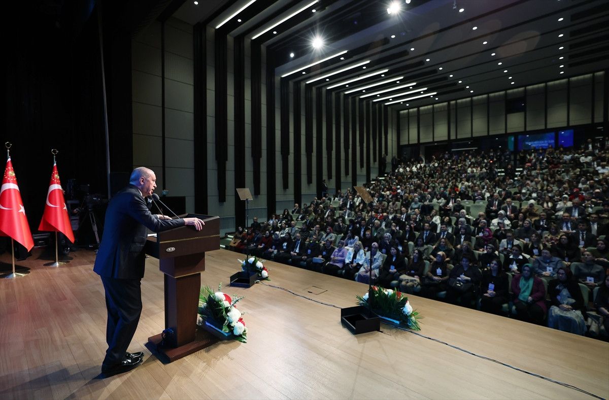 Konuşmalarında ailenin önemine ve toplumdaki yerine değinen Erdoğan, "Aile, okul hükmündedir" dedi.