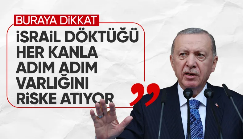 İsrail'e yönelik sert tepki gösteren Erdoğan, "Kabadayılık taslayan İsrail aslında ne yaptığının farkında değil. Kendi varlığını ve geleceğini riske atıyor" dedi.