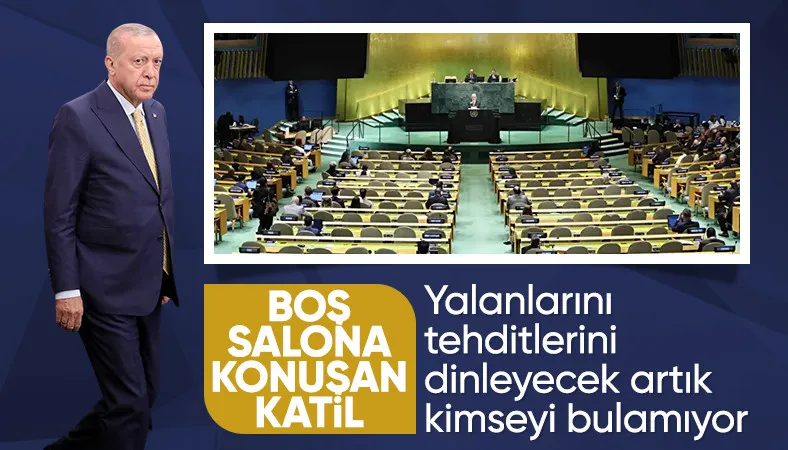 Akabinde sözü Gazze'ye getiren Cumhurbaşkanı Erdoğan, Netanyahu'nun BM'de nboş koltuklara karşı konuştuğunu söyledi.