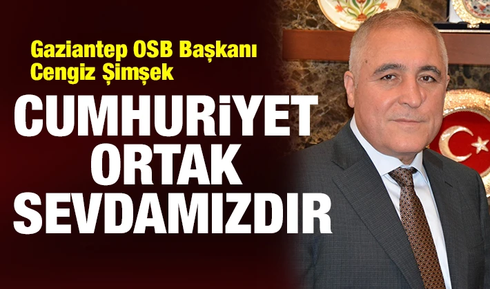 Başkan Şimşek, mesajında şunları söyledi: "Dünya üzerinde savaşların, kan ve gözyaşının eksik olmadığı bir dönemden geçerken Cumhuriyetimizin ve 'Yurtta Sulh, Cihanda Sulh' sözünün önemini daha iyi anlıyoruz. Bugün bu topraklar üzerinde özgürce ve barış içerisinde yaşıyorsak bunu Cumhuriyetimize borçluyuz. Atatürk'ün, 'Siyasi, askeri zaferler ne kadar büyük olurlarsa olsunlar ekonomik zaferlerle taçlandırılmamışlarsa, meydana gelen zaferler devamlı olamaz' sözünü kendine rehber edinen Gaziantepli sanayiciler, üretim, istihdam ve ihracat alanındaki başarıları ile ülkemizin gururu haline gelmiştir. Bizler Gaziantepli sanayiciler olarak, şartlar ne olursa olsun, Cumhuriyetimizi, muasır medeniyetler seviyesinin üzerine çıkarmak için var gücümüzle çalışmaya, ülkemiz için üretmeye devam edeceğiz."
