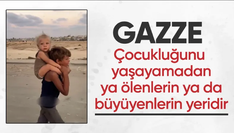 Dünyanın farklı coğrafyalarındaki yaşıtları parklarda oynayan Gazzeli bir çocuğun sırtında taşıdığı kardeşiyle ağlayarak göç ettiği anlar kayda alındı.