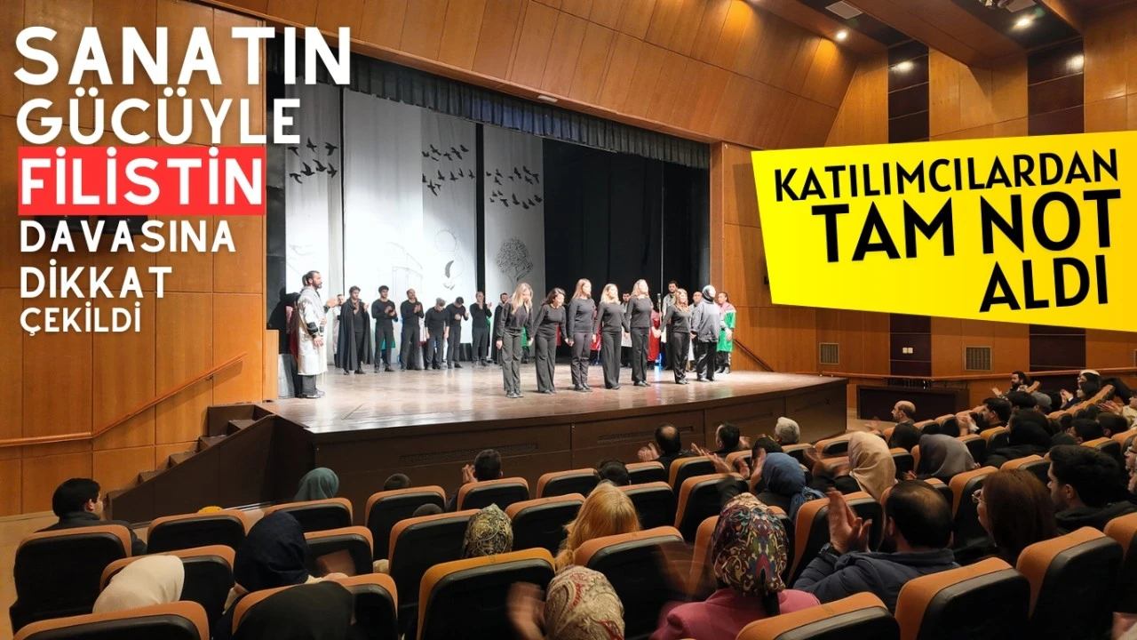 buluştu. Sahne Maraş Tiyatro Okulu öğrencileri tarafından sahnelenen oyun, Filistin halkının