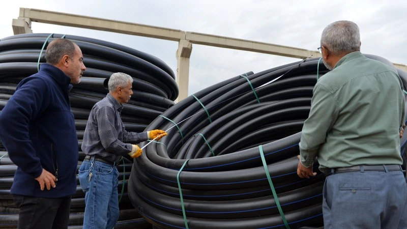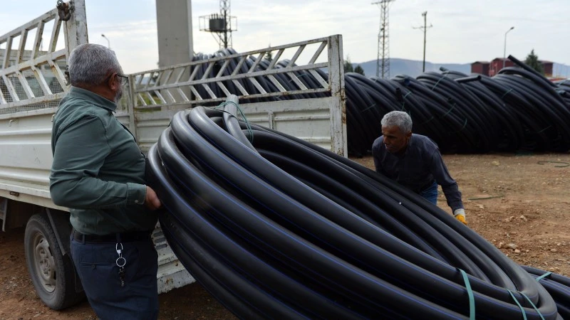 Büyükşehir Belediyesi tarafından sağlanan sulama borusu desteği sayesinde üreticilerin ürün