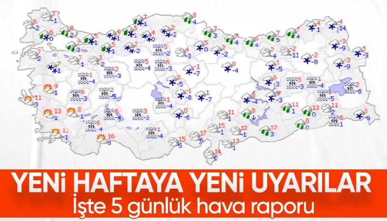 Ülkenin büyük kısmında karla karışık yağmur ve kar yağışlarının süreceği tahmin ediliyor. Marmara’nın doğusu, İç Anadolu’nun doğusu, Batı ve Orta Karadeniz, Doğu Karadeniz kıyıları ve Doğu Anadolu’nun güneybatısı ile bazı Güneydoğu Anadolu illeri ve Kahramanmaraş, Osmaniye, Eskişehir gibi illerde kar yağışı bekleniyor.
