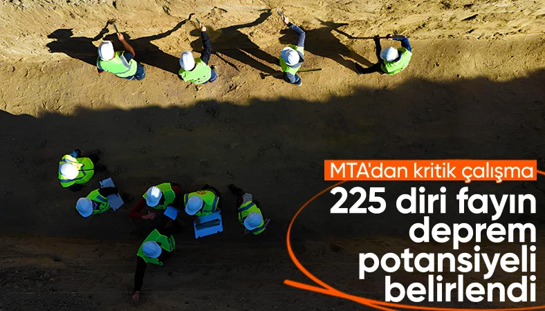 Türkiye'deki 485 diri fay hattı ve segmentinin 225'i üzerinde hendekler kazan MTA, 12 yılda 225 fayın deprem periyodunu ve potansiyelini belirledi, faylarla ilgili riskleri gösteren Türkiye Deprem Tehlike Haritası'nın güncellenmesine katkı verecek.