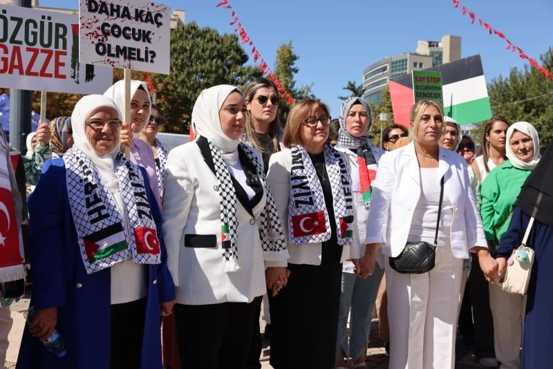 Programda konuşan Gaziantep Büyükşehir Belediye Başkanı Fatma Şahin, Gazze’de yaşanan insanlık dramının sadece Filistinlilerin değil, tüm dünyanın ortak sınavı olduğunu belirterek, “Gazze’de yaşanan her acı, hepimizin yüreğinde derin bir yara açıyor. Gazze’nin acısı, insanlığın ortak sınavıdır. Biz, adaletin ve merhametin medeniyetinden gelen bir milletiz. Bu topraklarda yetişen her kadın, her anne, Gazzeli bir annenin acısını yüreğinde hissediyor. Çünkü biz inanıyoruz ki, insanlık bir bütündür; bir yer acı çekiyorsa, diğer taraf huzur bulamaz. Bugün bu meydanda kurulan vicdan zinciri, sessiz ama çok güçlü bir çığlıktır. Kadınların öncülüğünde 81 ilde yükselen bu vicdan sesi, dünyaya barışın mümkün olduğunu hatırlatıyor. Barışın dili kadındır, şefkatin dili kadındır. Biz, annelerin gözyaşını dindirmek, çocukların yeniden gülmesini sağlamak için buradayız ve inanıyoruz ki: Bir gün Gazze’de çocuklar yeniden gülümseyecek, barışın güneşi yeniden doğacak” açıklamalarında bulundu.