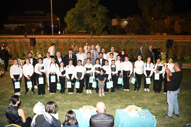 tiyatroda Ömer Kanaatbilen Ortaokulu öğrencilerinin sunduğu müzik dinletisi büyük