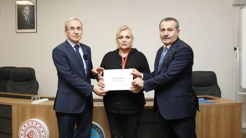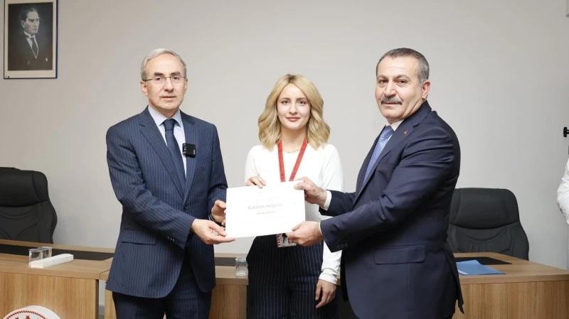 Egitim sonunda Gaziantep İslam Bilim ve Teknoloji Üniversitesi Rektörü Prof. Dr. Şehmus Demir ve Havalimanı Baş müdürü Fikret Akbulut'un katılımıyla sertifika töreni düzenlendi. Gaziantep Havalimanı Başmüdürü Fikret Akbulut’un eğitim sonunda Gaziantep İslam Bilim ve Teknoloji Üniversitesi Rektörü Prof. Dr. Şehmus Demir’e ve Üniversite Öğretim görevlilerine teşekkür plaketi verdi.