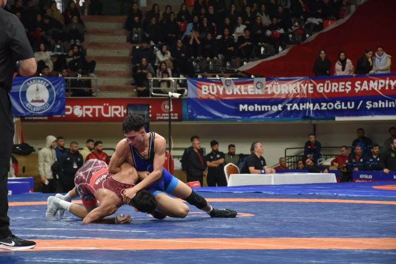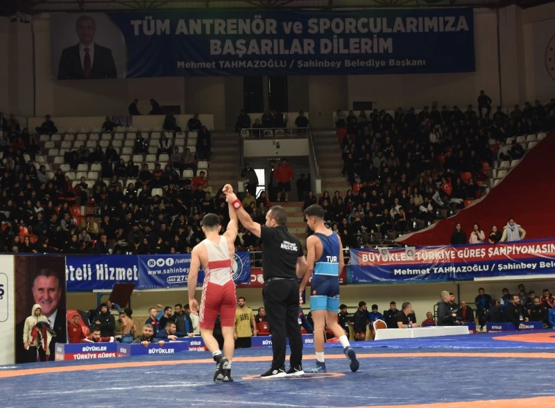Büyükler Türkiye Güreş Şampiyonası açılış gününde; Gaziantep Valisi Kemal Çeber, Şahinbey Belediye Başkanı Mehmet Tahmazoğlu, Gaziantep Gençlik ve Spor İl Müdürü