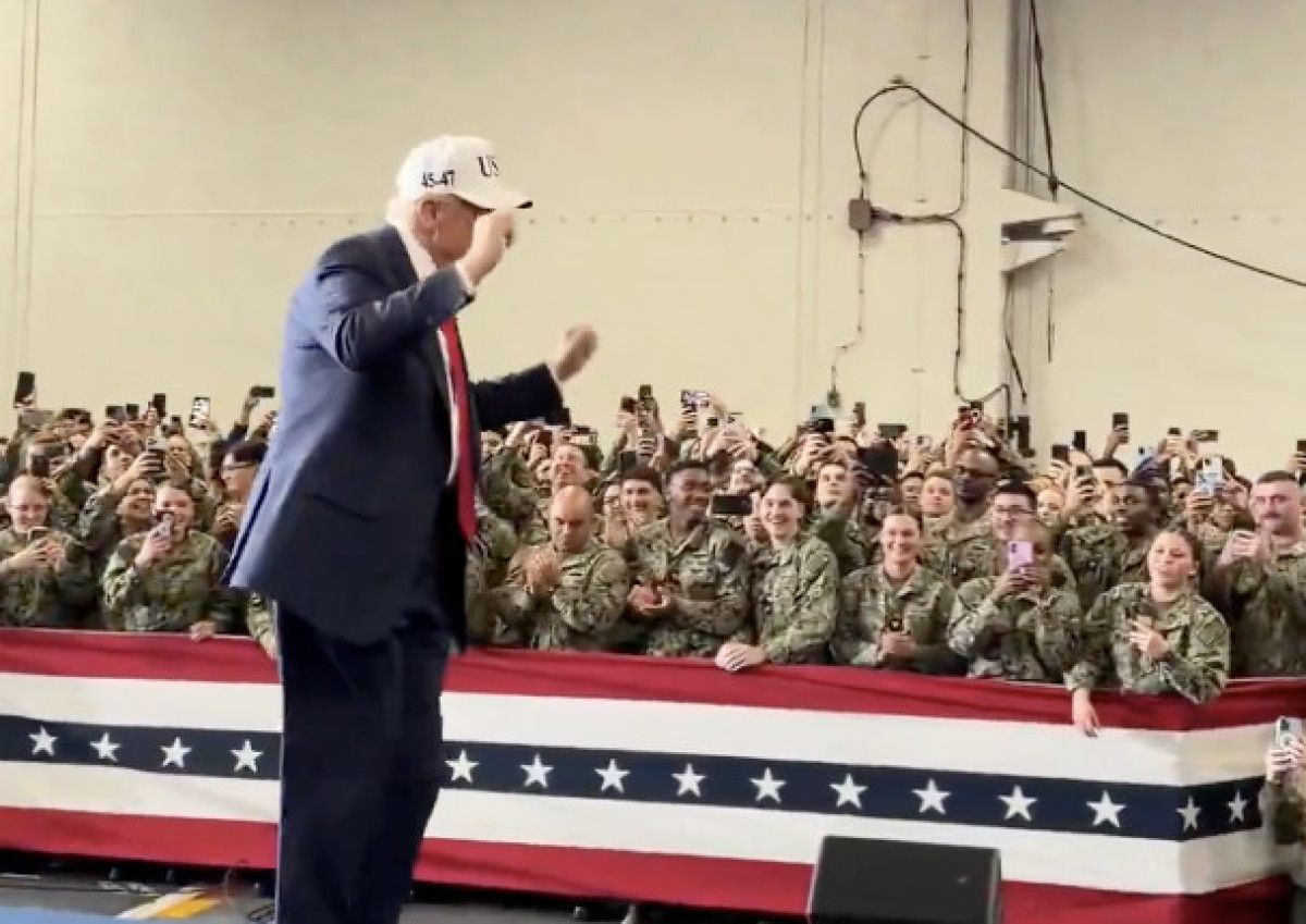 ABD Donanmasındaki askerler de Trump'ın dansına alkışlarda eşlik etti.
