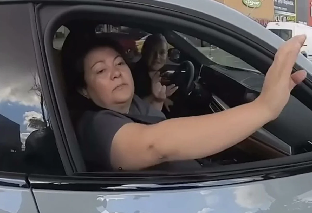 Arabayı kullanan kadın şoför duruma sinirlendi.
