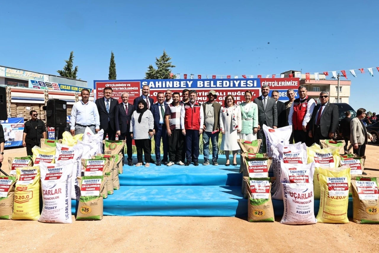 Çiftçilere yönelik desteğini artırarak sürdüren Şahinbey Belediyesi, Tarım ve Orman Bakanı İbrahim Yumaklı'nın katılımıyla çiftçilere 4 bin ton sertifikalı buğday, arpa tohumu ve gübre dağıtımına başladı. Çiftçilere 18.506.400 kg sertifikalı tohum ve 19.059.600 kg kimyevi gübre desteğinde bulunan Şahinbey Belediyesi desteklerini artırarak sürdürmeye devam ediyor.