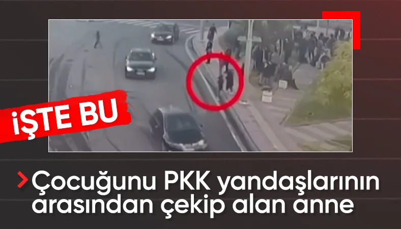 Annenin oğlunu terör örgütü yandaşlarının arasından çekip kurtardığı anlar, sokaktaki güvenlik kameraları ile anbean kaydedildi.