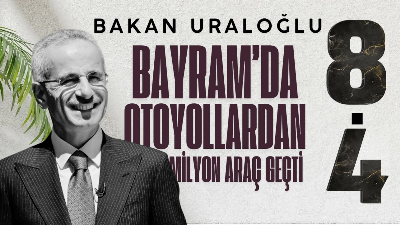 Ulaştırma ve Altyapı Bakanı Abdulkadir Uraloğlu, 2025 yılı Ramazan Bayramı’nı kapsayan dönemindeki otoyol verilerini değerlendirdi. Bakan Uraloğlu, “Karayolundan demiryoluna, kent içi ulaşımdan havayoluna kadar hayata geçirdiğimiz projelerle milletimiz geçen yıl da olduğu gibi bu sene de sevdiklerine ulaştı. Arefe gününü de kapsayan 29 Mart-1 Nisan tarihlerinde otoyollardan toplam 8 milyon 425 bin 491 araç geçiş yaptı” dedi.