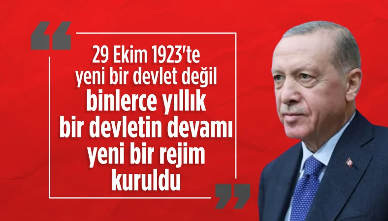 29 Ekim Özel Programı'nda açıklamalarda bulunan Cumhurbaşkanı Recep Tayyip Erdoğan, Cumhuriyet'in yeni bir devlet değil, Türk Milleti'nin binlerce yıllık devletler silsilesinin son silsilesi olduğuna vurgu yaptı.