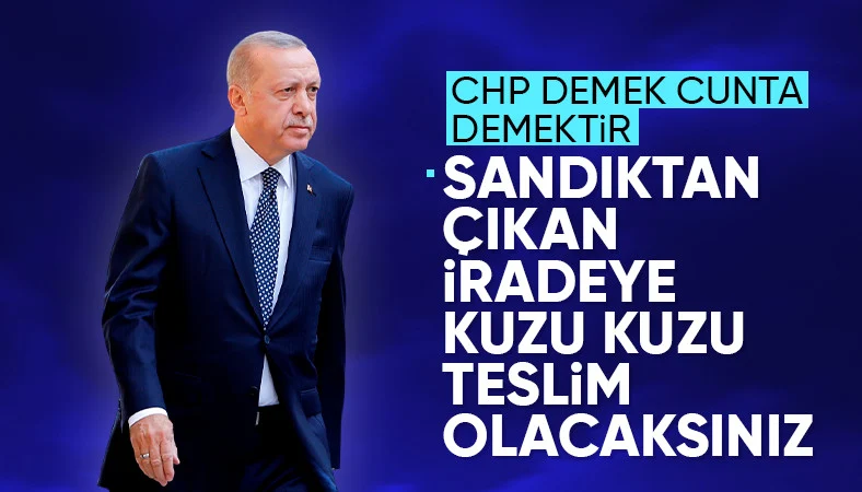 CHP Genel Başkanı Özgür Özel'in "cuntacı" sözlerine yanıt veren Erdoğan, "Millet size destek vermiyor ve cuntacılardan medet umuyorsunuz. CHP demek, cunta demek." ifadelerine yer verdi.