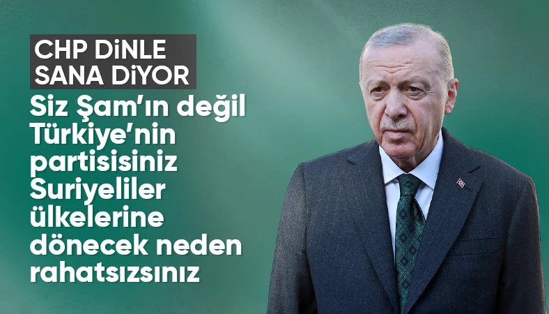 Cumhurbaşkanı Erdoğan'ın devam eden sözlerinde CHP'ye de tepki gösterdi ve "Siz Şam rejiminin değil Türkiye'nin ana muhalefet partisisiniz" dedi.