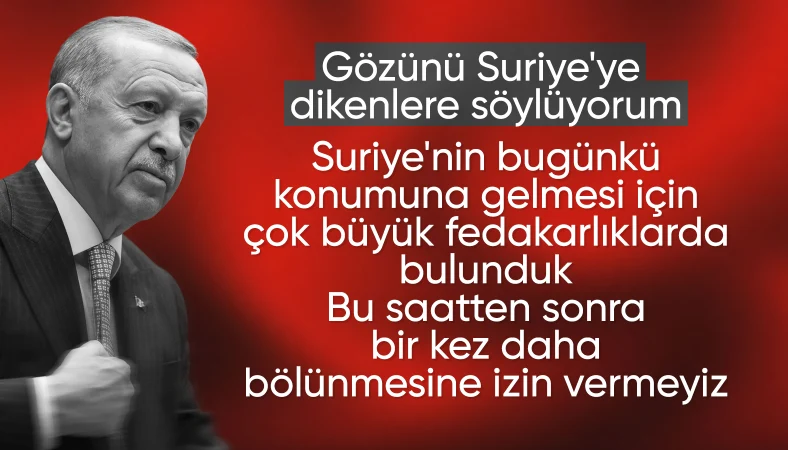 Suriye halkının yıllar sonra özgürlüğe kavuştuğunu belirten Cumhurbaşkanı Erdoğan, Suriye'nin yeniden bölünmesine izin vermeyeceklerini söyledi.