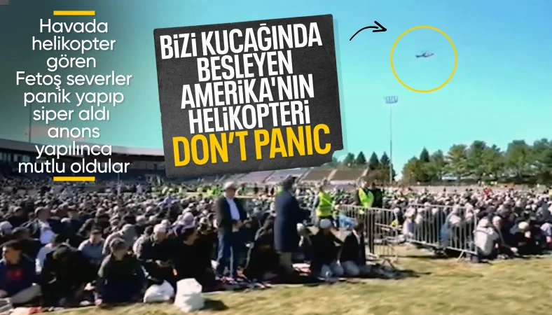 FETÖ elebaşı için toplananlar, havada bulunan helikopteri görünce panikledi.