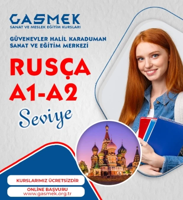 Gaziantep Büyükşehir Belediyesi Sanat ve Meslek Eğitim Kursları (GASMEK) Güvenevler Halil Karaduman Sanat ve Eğitim Merkezi’nde Rusça A1–A2 Seviye kursları başlıyor. Kurslarda temelden Rusça öğrenmeyi, günlük konuşma becerileri kazanmayı ve kendini geliştirmek isteyen herkes için ücretsiz kurs verilecek. Online başvurular www.gasmek.org.tr adresinden yapılacak.