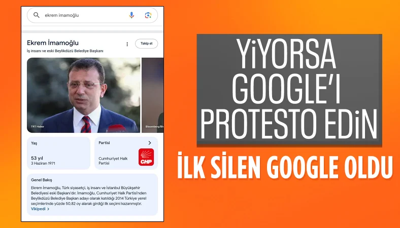 Öte yandan, Google'ın, İmamoğlu’nun tutuklanmasının ardından arama sonuçlarından "İstanbul Büyükşehir Belediye Başkanı" unvanını kaldırdığı dikkatleri çekti.