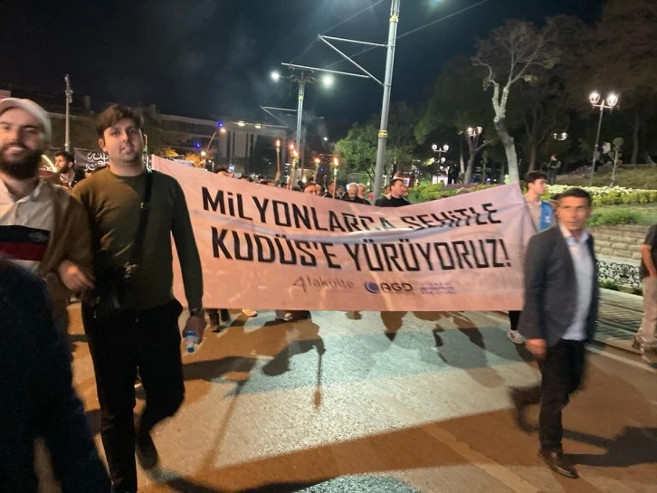 Konya Kültür Park'ta, Anadolu Gençlik Derneği (AGD) tarafından dün akşam "Büyük Kudüs Yürüyüşü" gerçekleştirildi.