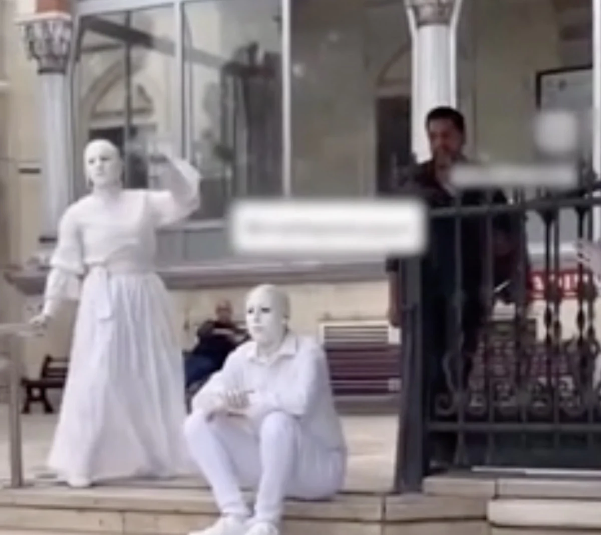 Cami önünde düzenlenen performans tepkilere yol açtı. Sessiz göstericilerin taş heykele benzer hareketleri gündem oldu.
