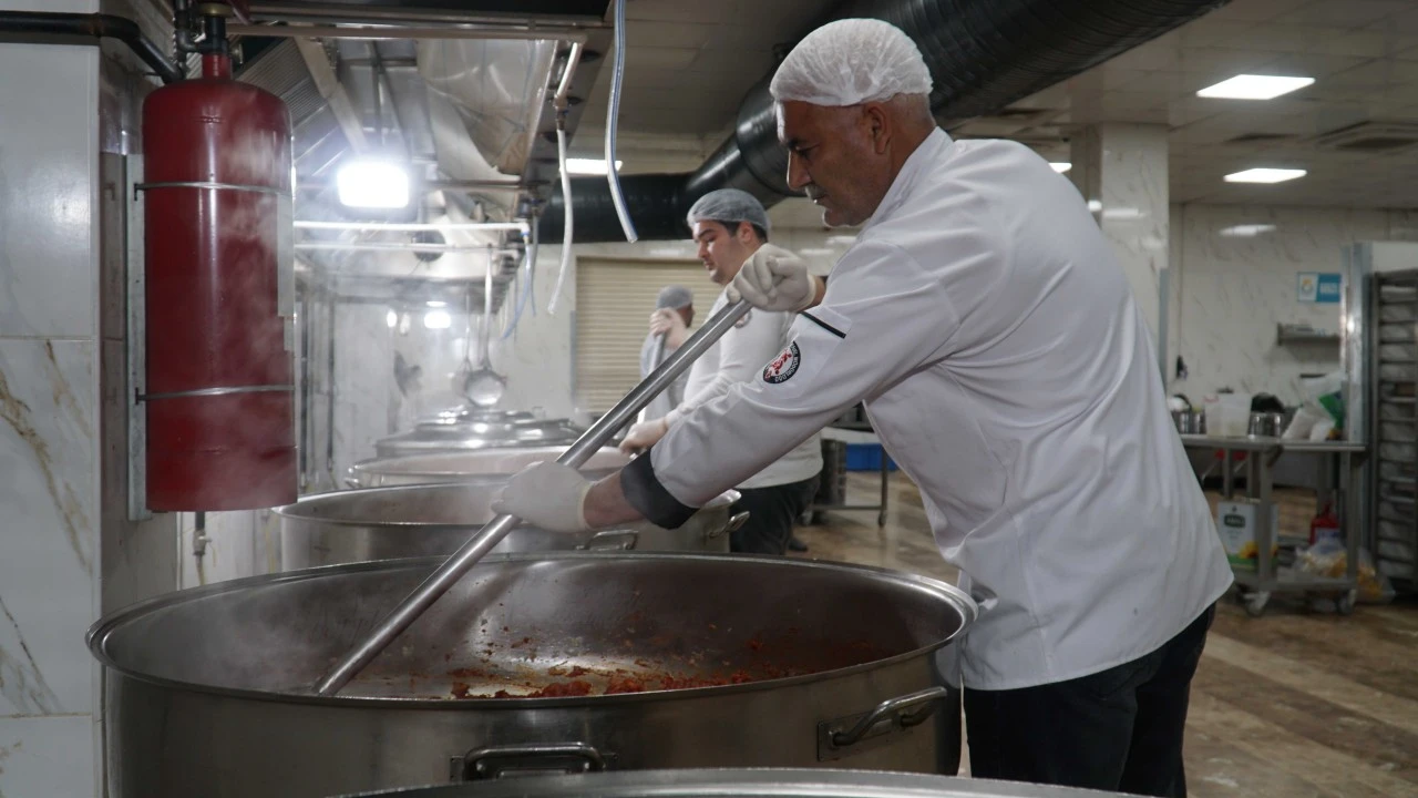 standartlarına uygun olarak hazırlanan yemekler, sefer taslarına dolduruluyor. Ramazan ayının manevi